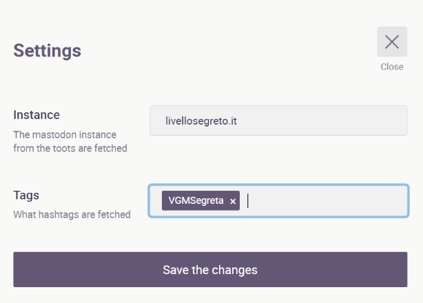 Come funziona? È facile. Cliccate su “Settings”, inserite “livellosegreto.it” nel campo dell’istanza e scrivete l’hashtag che volete ascoltare. Per confermarlo, basta premere barra spaziatrice. Volendo potete ascoltare anche più di un hashtag per volta.